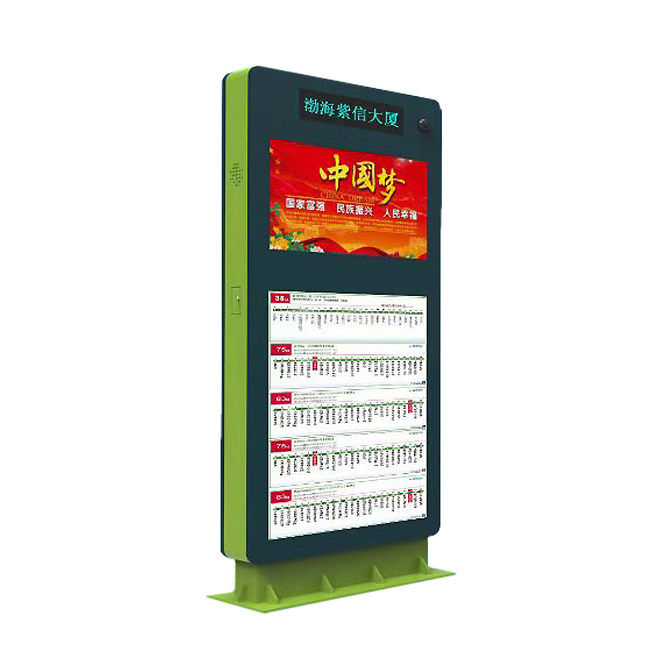 高亮液晶屏:公交电子站牌采用户外专用高亮液晶屏,显示面积941*530mm,LED直下式背光,亮度2000cd/m2,阳光下可视。屏幕分辨率高清1920*1080; 自动感光探头,根据环境光线调节屏幕亮度,节能省电,减少光污染;